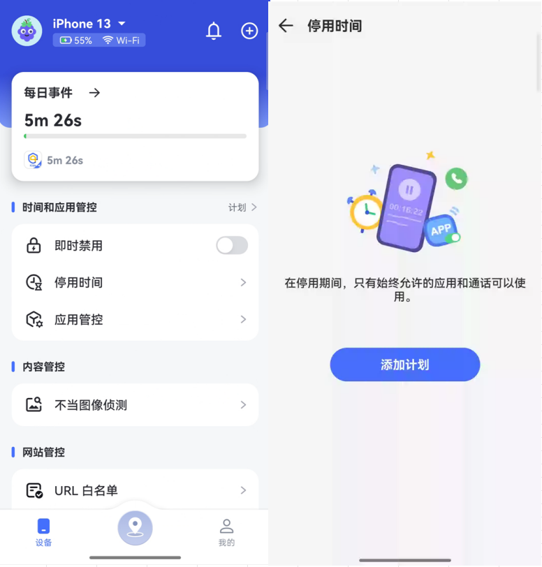 3.权限开启成功后,您可以开始在家长端对孩子的设备进行管控。