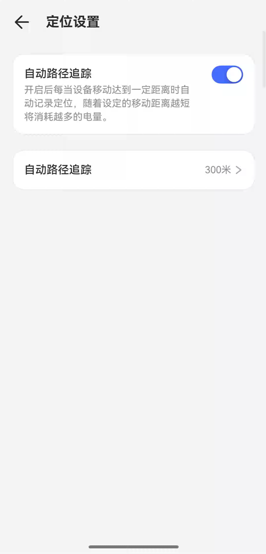 开启后每当设备移动达到一定距离时自动记录定位,随着设定的移动距离越短将消耗越多的电量。